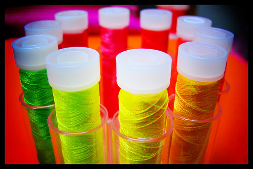 Why stick to bottlecap size when you can do bigger? She says after sowing it all wrong and having to unpick it. At least it is a learning curve. It's the BigJen pincushion number two. In honour of being more technicolour I have cracked open the neon thread I bought in a village hall deep in the fens not long since.